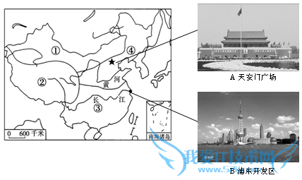 试题:德国慕尼黑大学的一位教授是这样看待中国的:他首先把中国分成东部与西部,再分别分成南北两部分,形成如下图①、②、③、④四块区域,并把四块区域命名为“绿色中国”、“黄色中国”-地理试题及答案