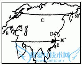 观察亚欧大陆轮廓图,回答下列问题:(1)A地的气候类型是,C地的气候类型