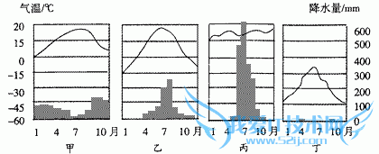 试题:仔细阅读“气温曲线和降水柱状图”,分析后回答:(1)甲乙丙丁四幅图中,全年降水少的是图,夏季降水少的是图,降水年变率最大的是______图。(2)甲乙丙丁四幅图中,气温年变化最-地理试题及答案