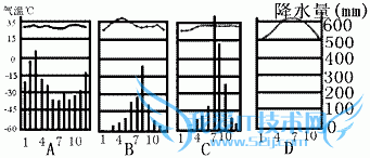 试题:下图中属于热带雨林气候的是[]A、AB、BC、CD、D-地理试题及答案