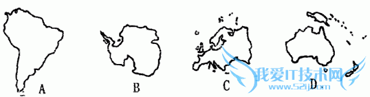| 下图是四个大洲轮廓图,读图并回答: |