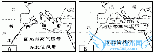 试题:读地中海地区图,填答下列问题。(1)A、B两图分别表示、季节的气压带和风带的分布状况。(2)从图上可以看出地中海地区,大部分的纬度为之间,正是处在带和带随太阳直射点位置移-地理试题及答案
