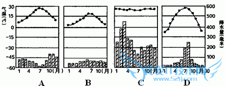| (5)A、B、C、D四图中,气温年较差最小的是图。 |