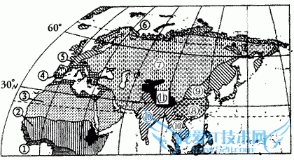 | (1)填写气候类型: ① ② ③ ④ ⑤ ⑥ ⑦ ⑧ ⑨ ⑩ |