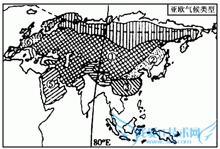 试题:读“亚欧气候类型图”,回答问题:(1)图中数码所代表的是什么气候类型?①___________②___________③___________④___________⑤___________⑥___________(2)在“亚欧气候类型图”中用字-地理试题及答案