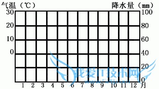 | (1)根据气候资料,在下图中绘制该地的全年气温曲线图和各月降水量柱状图。 |