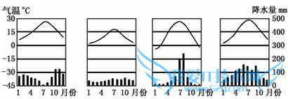 读下列气候图,回答1—2题ABCD1、表示地中海气候的是[]A、AB、BC、CD、D2、...[世界主要气候类型 ]