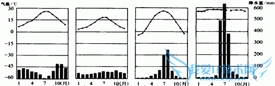 试题:请将气候类型的代号填在与之对应的降水柱状图和气温曲线图括号内:A.温带海洋性气候B.温带季风气候C.热带季风气候D.地中海气候____________________________________________-地理试题及答案