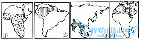 下图是四种热带气候在世界上最大的分布区示意图,读图回答有关问题:![]() |