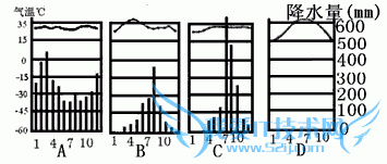 试题:下图中属于热带雨林气候的是[]A.AB.BC.CD.D-地理试题及答案