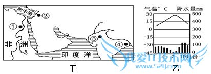试题:读图,回答:甲图四地气候类型与乙图一致的是[]A.①B.②C.③D.④-地理试题及答案