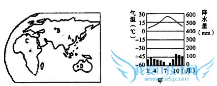 试题:读世界部分地区图、甲地气温和降水量月分布图,完成1—2题。1、对甲地气候特征的描述正确的是[]A、全年高温少雨B、全年温和多雨C、夏季高温少雨,冬季温和多雨D、夏季高温多雨-地理试题及答案