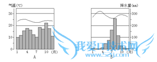 | 读“A、B两地气温曲线和降水量柱状图”,回答下列问题。 |