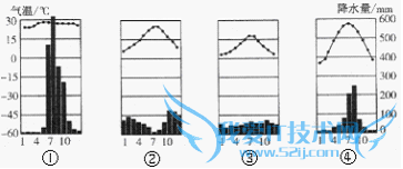 | 下列四幅气候资料图所表示的气候类型中,在地中海沿岸分布最典型的是 |