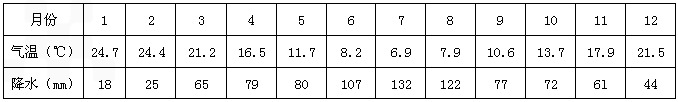 下表是某地一年内各月的平均气温和降水资料,你能据此判断其气候类型吗?下面的步骤可以帮助你,试试看!![]() (2)综合气温资料可知:该地所处的温度带为_____带。 (3)由该地的降水资料可知:该地降水主要集中在_____季节。 (4)综合(1)(2)(3)问可知:该地的气候类型为_____气候。 |