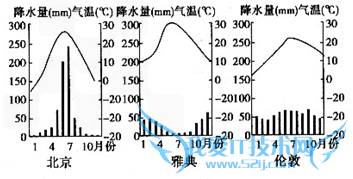 | A.都属于温带季风气候 B.北京属于温带大陆性气候 C.雅典属于地中海气候 D.伦敦属于温带季风气候 |