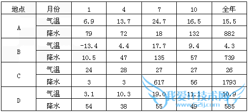 试题:分析下表的气候资料,判定气候类型。(气温单位℃,降水单位mm)A.__________,B.__________,C.__________,D.__________。-地理试题及答案