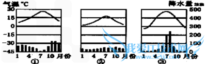 | 下面是三地的气候资料,与雅典、北京、伦敦对应的资料序号依次是 |