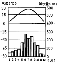 读某气候各月的气温变化曲线和降水柱状图,完成1—4题。1、正确描述此气候