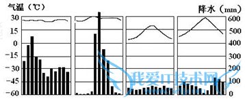 下面四幅气候类型图,从左到右表示的气候类型依次是 ![]() |