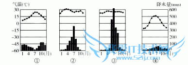试题:读下列四地气温降水资料图,回答下列小题。1、图中气候类型中,全年降水最多的是[]A、①B、②C、③D、④2、③气候类型分布的大洲是[]A、亚洲B、非洲C、欧洲D、大洋洲3、四类气候中-地理试题及答案