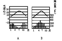 读图:A、B两地气温曲线和降水柱状图判断气候类型[]A、图A是地中海气候B、
