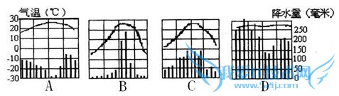 下面四幅气温年变化和降水柱状图中,符合亚热带季风气候的是[]A.AB.BC.C...[世界主要气候类型 ]