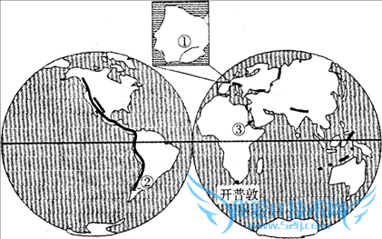 | 2.图中山脉②地处安第斯山脉的南段,位于 |