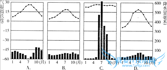 | (3)下面四幅图中示意甲区域沿海地区气候类型的是___。(填字母即可) |
