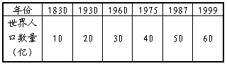 | 下表为1830年~1999年世界总人口的数据。根据题意,完成下列各题。 |