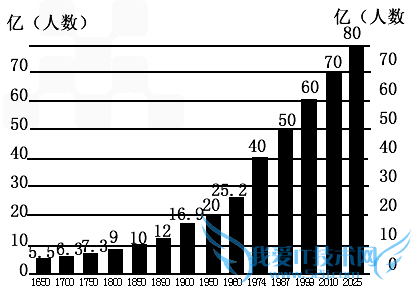 试题:阅读世界人口增长图,完成下列要求。(1)从1650年到l750年的l00年间,世界人口增加了_______亿:从l750年到l850年的l00年间,世界人口增加了________亿;从l850年到l950年的l0-地理试题及答案