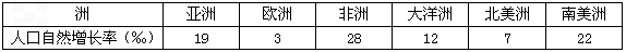 读“世界各大洲的人口自然增长率表”,叙述错误的是:![]() |