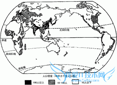 | 从世界人口分布图中可以看出,世界人口稠密地带主要位于 |
