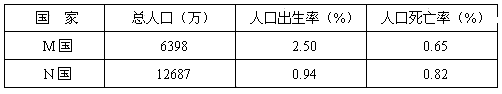 根据下表内容判断,下列说法正确的是①人口自然增长率较高的是M国②人口自