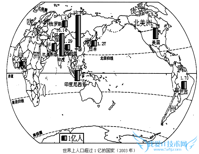 | (4)世界人口超过1亿的国家共有______个,其中亚洲有______个。 |