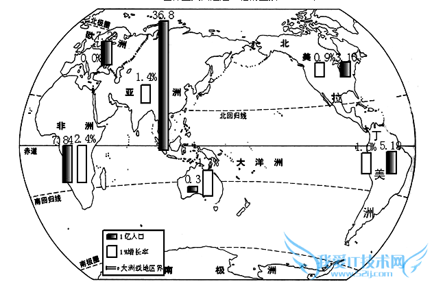 试题:读下图回答问题。世界各大洲或地区人口数(2003年)和平均人口自然增长率(1995~2000年)(1)从图中可知,人口最多的是______洲,人口最少的是______洲,无常住人口的是______洲。-地理试题及答案