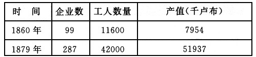 | 下表是19世纪六七十年代俄国机器制造业统计表,导致其变化的主要原因是俄国 |
