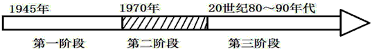| 美国凭借强大的经济实力在国际舞台上扮演着重要的角色。“二战”以来,美国经济出现了几个不同的发展阶段。对图示中第二阶段美国经济发展的特点描述最准确的是 |