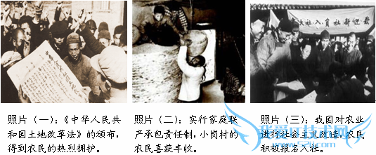 试题:阅读下列三幅历史照片:请你结合所学知识回答:(1)以上三幅历史照片反映的情境出现的先后顺序是______________。(填写序号)(2)据照片表明,我国政府实施的三项政策得到了农民的-历史试题及答案
