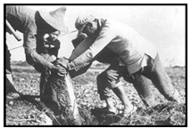 | 农业丰则基础强,农民富则国家盛,农村稳则社会安。中国共产党始终重视“三农”问题。新中国成立后,党和政府为解决“三农”问题,采取一系列措施,取得了巨大成就,但也不乏沉痛的教训。目前,党和政府坚持把解决好“三农”问题作为工作的重中之重,以促进农村的和谐发展。从下列图片中提取历史信息,结合所学知识回答问题: | |||
