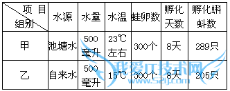 | 下表是某生物兴趣小组人工孵化蛙卵的实验记录: |