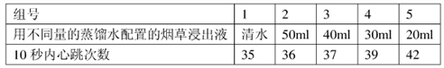 ÐÄÌø·¶Î§ÔÚ30-36´ÎÖ®¼äµÄ³ÉÄêË®Ôé½øÐÐʵÑ飬Ñ̲ݽþ³öÒºÊÇÓÃËĵȷݵÄÑÌË¿Öзֱð¼ÓÈë20¡¢30¡¢40¡¢50mlÕôÁóË®½þÅÝÒ»Ìì¶ø³É¡£ÏÂÁÐÊÇʵÑéµÄÏà¹ØÊý¾Ý£º