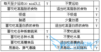 试题:判断下列哪些行为习惯有助于减小患心血管疾病的几率。(画“Y”表示认可)根据上述表格内容,你认为在日常生活中,应该如何控制和预防心血管疾病的发生?-生物试题及答案