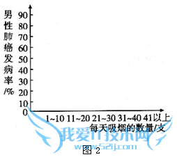 | 某地区男性吸烟与肺癌发病率关系如图1所示,请完成下列问题 |