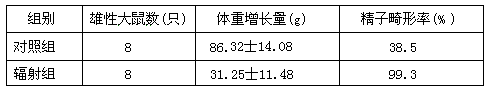 | 一些同学沉溺于电脑网络游戏,长时间的电脑电磁辐射对他们的身体有没有伤害呢?有人进行了动物实验:将雄性大鼠随机分成两组,相同喂养。一组为对照组,置于正常环境中;另一组为辐射组,置于通电电脑前35cm处。实验60天后获得数据如下表,由此可以得出的实验结论是: |