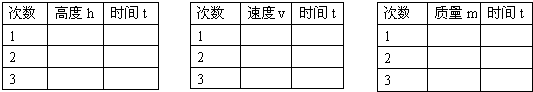 (2)m、v一定,t与h的关系 h、m一定,t与v的关系 h、v一定,t与m的关系: